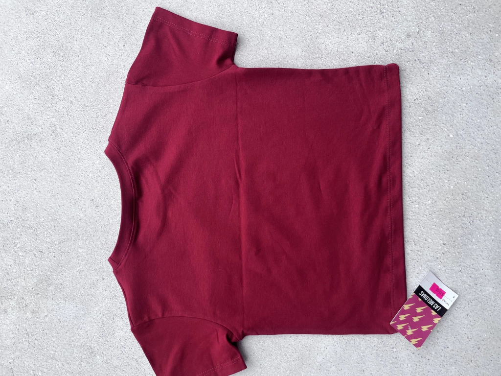 Remera baby tee en color cherry con estampa frontal estilo urbano. Corte entallado y tela suave que se adapta al cuerpo. Ideal para combinar con jeans, polleras o pantalones engomados para un look canchero y moderno.